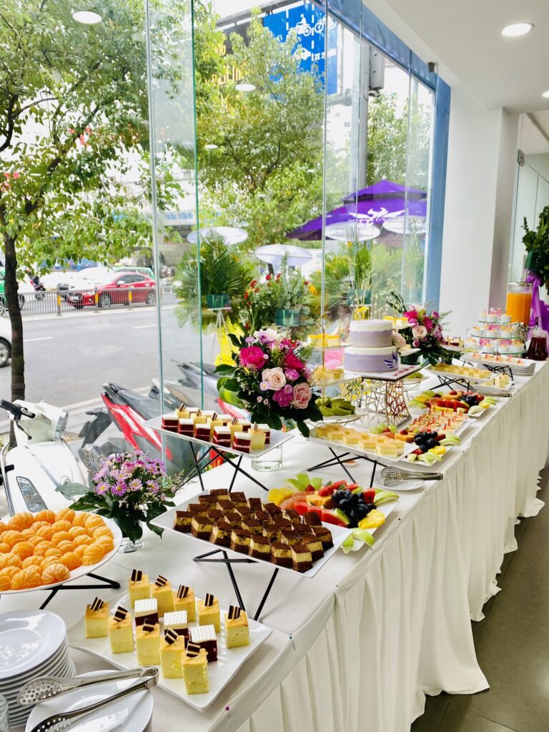 • Menu phong phú: bánh ngọt, hoa quả, finger food, trà, café, nước ép…